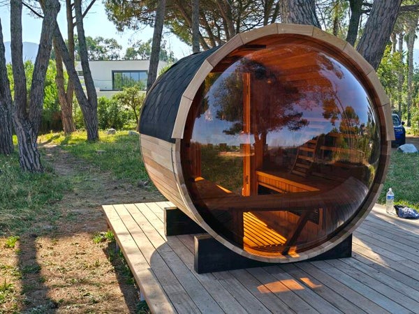 Notre sauna Tonneau Pierre de lave Ocean View est conçue pour être installé à l’extérieur.
